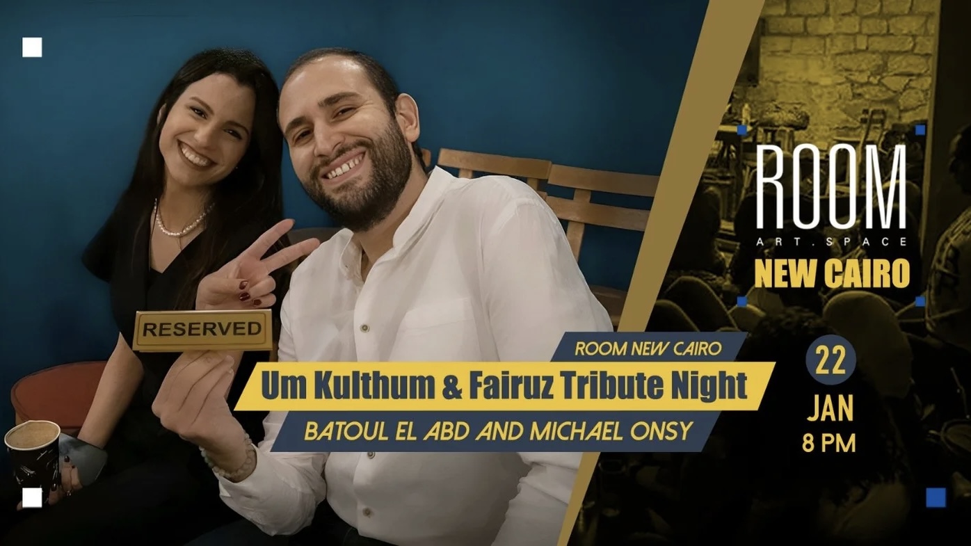 Um Kulthum and Fairuz Tribute Night with Batoul El Abd and Michael Onsy at Room New Cairo Jan 22 Um Kulthum and Fairuz Tribute Night with Batoul El Abd and Michael Onsy at Room New Cairo 8:00 pm Concert