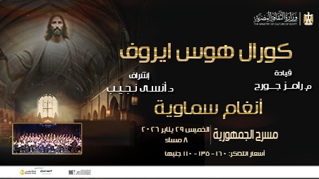 Hos Erof Choir Live at Gomhouria Theatre Jan 29 Hos Erof Choir Live at Gomhouria Theatre 8:00 pm Concert