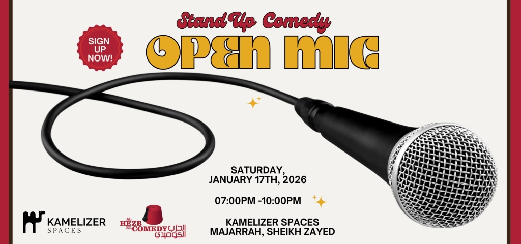 Standup Comedy Open Mic at Kamelizer Sheikh Zayed Jan 17 Standup Comedy Open Mic at Kamelizer Sheikh Zayed 7:30 pm Comedy