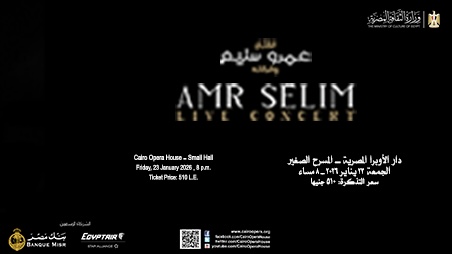 Amr Selim Live in Concert at Cairo Opera House Jan 23 Amr Selim Live in Concert at Cairo Opera House 8:00 pm Concert