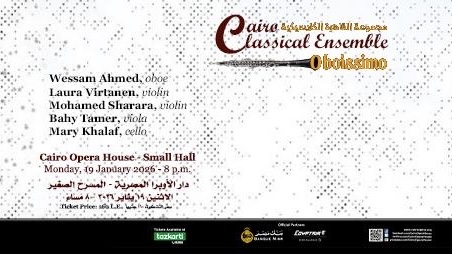 Cairo Classical Ensemble with Wessam Amin at Cairo Opera House Jan 19 Cairo Classical Ensemble with Wessam Amin at Cairo Opera House 8:00 pm Concert