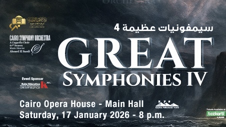 Great Symphonies IV: Cairo Symphony Orchestra at Cairo Opera House Jan 17 Great Symphonies IV: Cairo Symphony Orchestra at Cairo Opera House 9:00 pm Concert