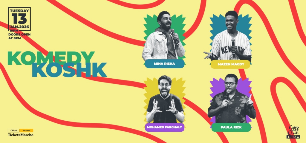 Komedy Koshk at Cairo Jazz Club 610 Jan 13 Komedy Koshk at Cairo Jazz Club 610 Tue 13 January 2026 at 8:00 am Comedy